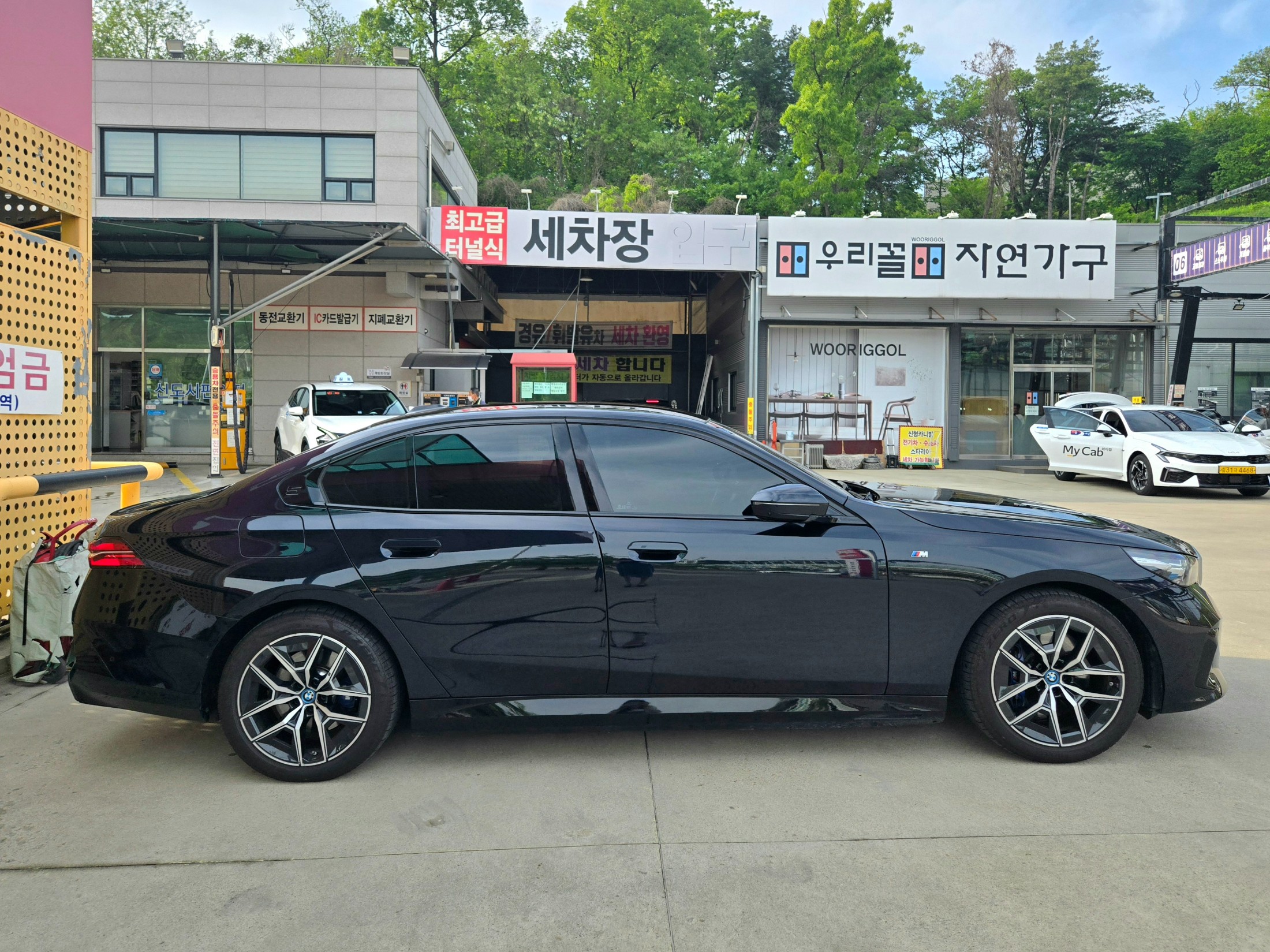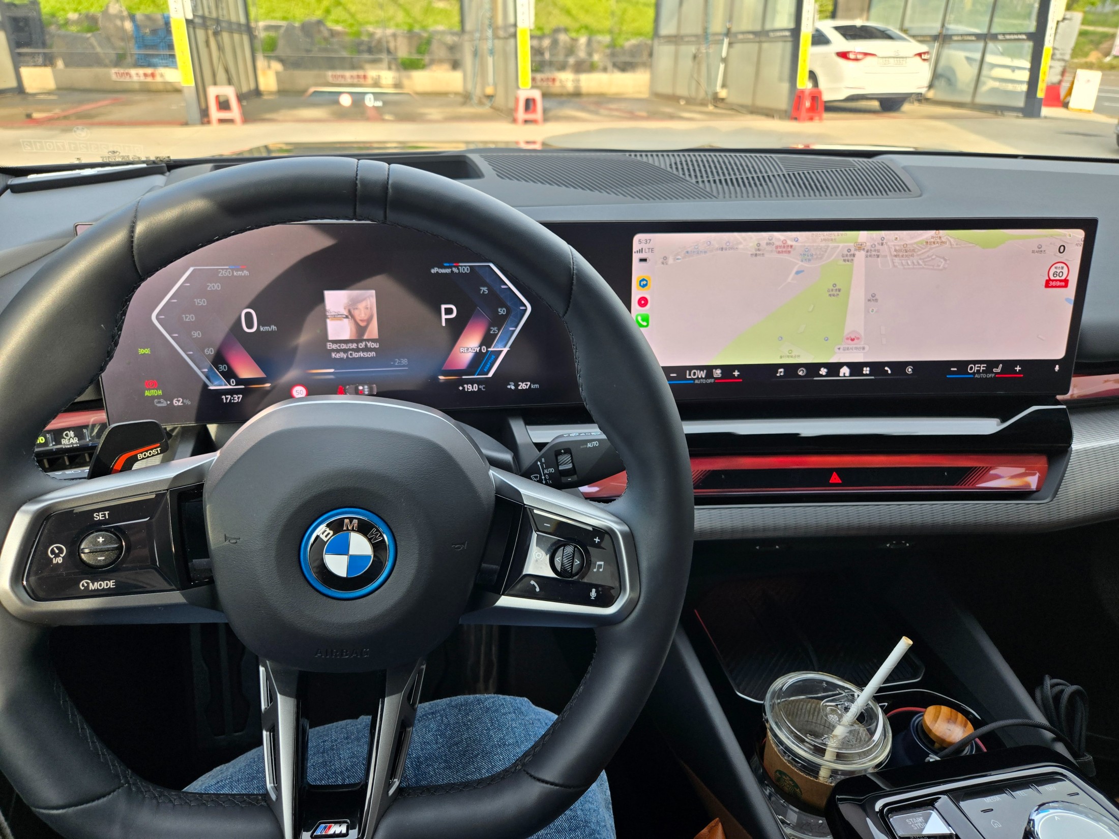 - 차종은 BMW i5 (G60) eDrive 40 M 스포츠입니다. 5시리즈 풀체인지 모델인 G60의 순수 전기차 버전으로, 강력한 전기 모터의 성능과 정숙성, 그리고 BMW 특유의 정교한 주행 감각을 모두 갖췄습니다.